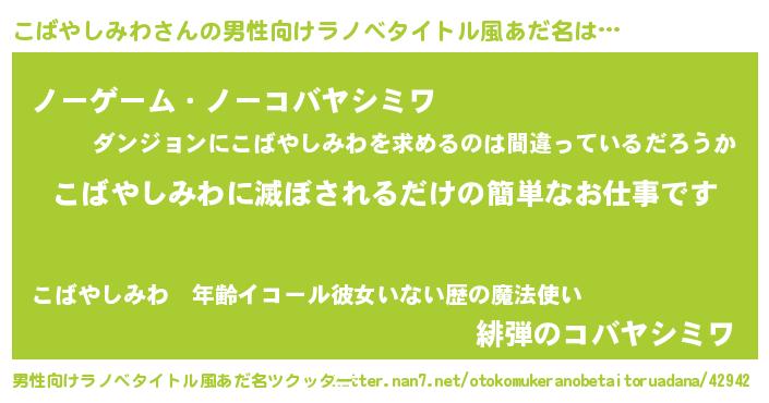 | 伝説のあだ名 | 『魔王と互角に渡り合う錬金術士こばやしみわ』 |