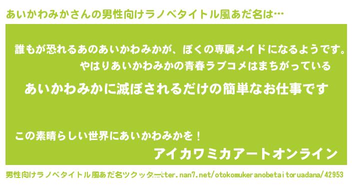 | ヒーロー風カッコイイあだ名 | 『ネオアイカワミカ』『仮面アイダー』 |