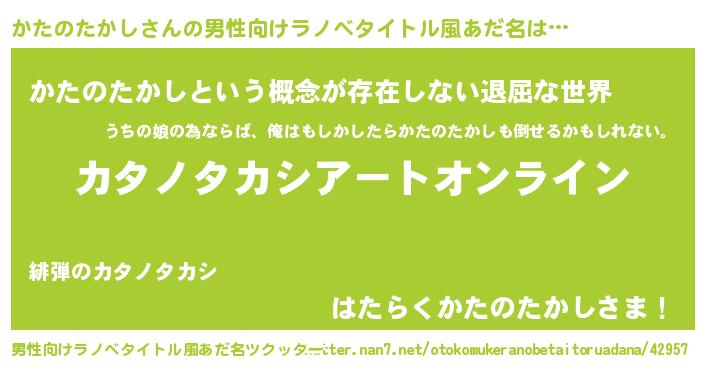 | ヘコむあだ名 | 『かたにゅー』『かたのたかし(震え声)』 |