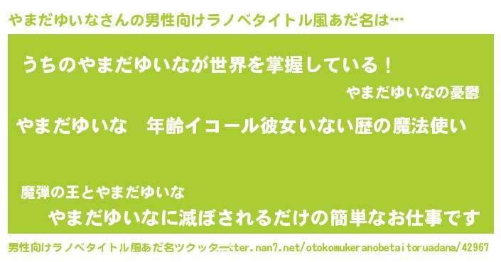| 女子向けラノベタイトル風あだ名 | 『やまだゆいなの玉の輿計画!』 |
