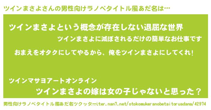 | ヘコむあだ名 | 『ツインまさよ(遠い目)』『ツイっちょ』 |