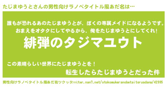 | 胡散臭い通販商品みたいなあだ名 | 『絶対に幸福をもたらす水素水…その名も「たじまゆうと」』 |