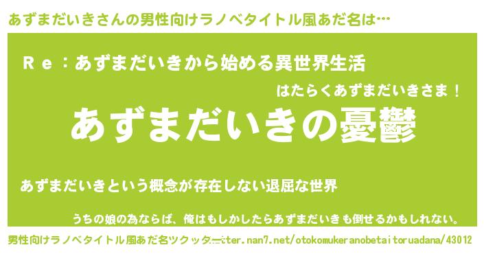 | 胡散臭い通販商品みたいなあだ名 | 『必ず成功するブレスレット…その名も「あずまだいき」』 |