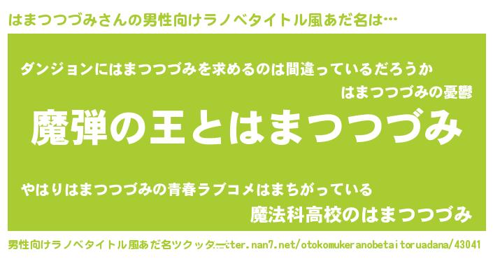 | 意味不明あだ名 | 『住所不定無職はまつつづみ(7歳)』 |
