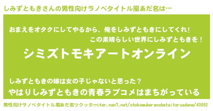 | 胡散臭い通販商品みたいなあだ名 | 『億万長者になれる霊験あらたかなお札…その名も「しみずともき」』 |