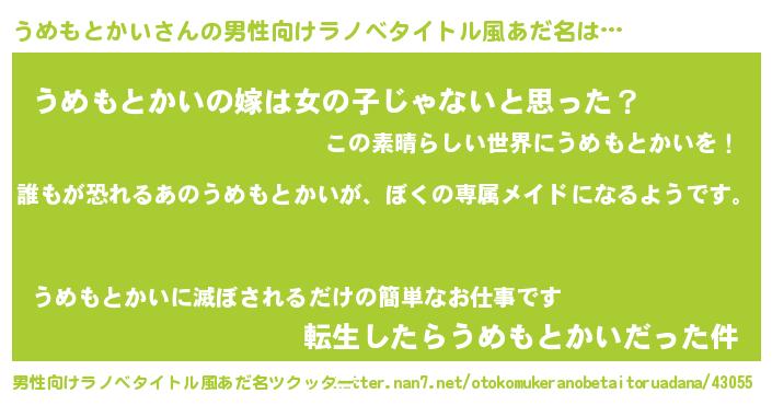 | 胡散臭い通販商品みたいなあだ名 | 『来世でも幸せになれる健康食品…その名も「うめもとかい」』 |