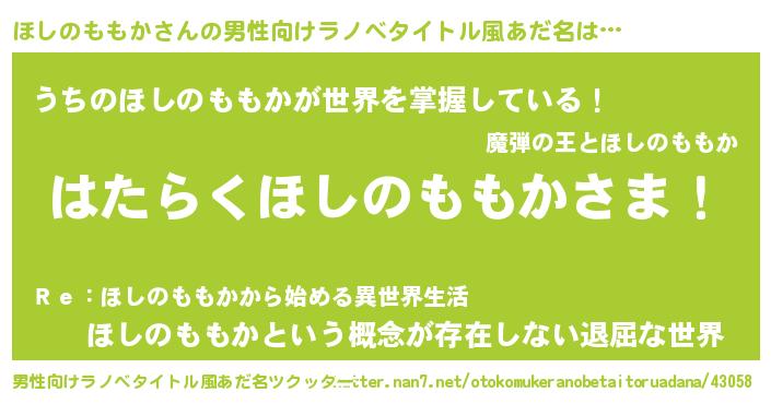 | ヘコむあだ名 | 『ほしのももか(笑)』『ほしにー』 |