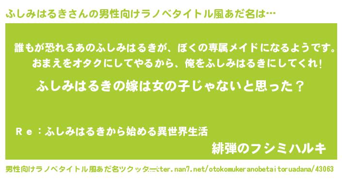 | ヘコむあだ名 | 『ふしを』『ふしみはるき(小並感)』 |