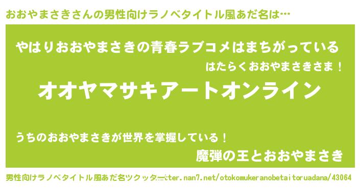 | ヒーロー風カッコイイあだ名 | 『スーパーオオヤマサキ』『仮面オオダー』 |