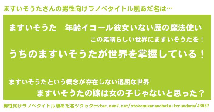 | ヘコむあだ名 | 『ますぷりん』『ますいそうた(笑)』 |