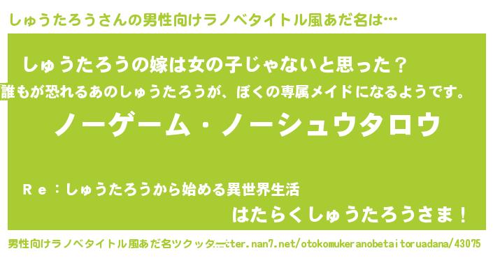 | ヒーロー風カッコイイあだ名 | 『慈愛の使者しゅうたろう』 |