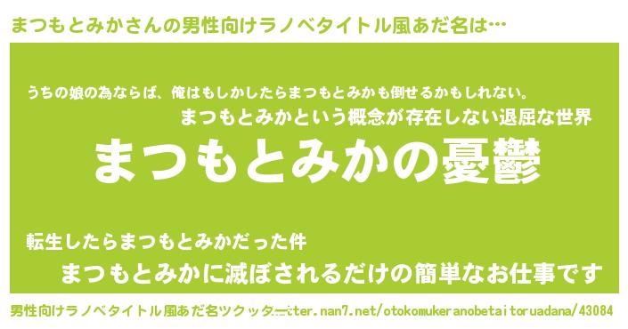 | 胡散臭い通販商品みたいなあだ名 | 『モテモテ間違いなし霊験あらたかなお札…その名も「まつもとみか」』 |