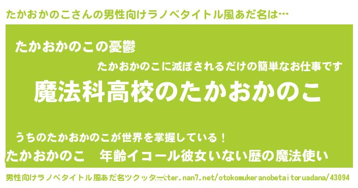 | 肩書あだ名 | 『たかおかのこ閣下』『たかおかのこCEO』 |