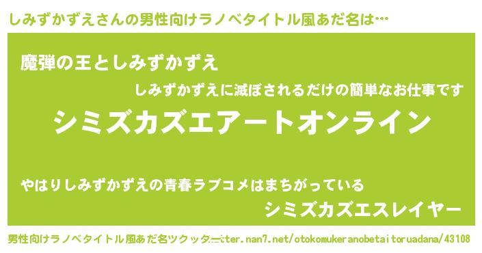 | 肩書あだ名 | 『しみずかずえ御曹司』 |