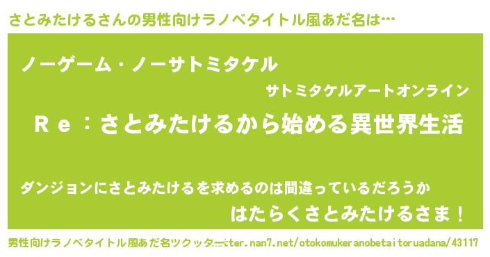 | 肩書あだ名 | 『さとみたける総統』『さとみたける塾長』 |