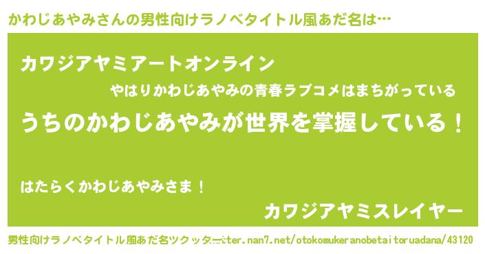 | 肩書あだ名 | 『かわじあやみ船長』『かわじあやみ大佐』 |
