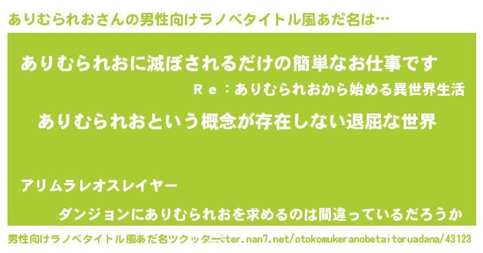 | ヘコむあだ名 | 『ありむられお(小並感)』『あり太郎』 |
