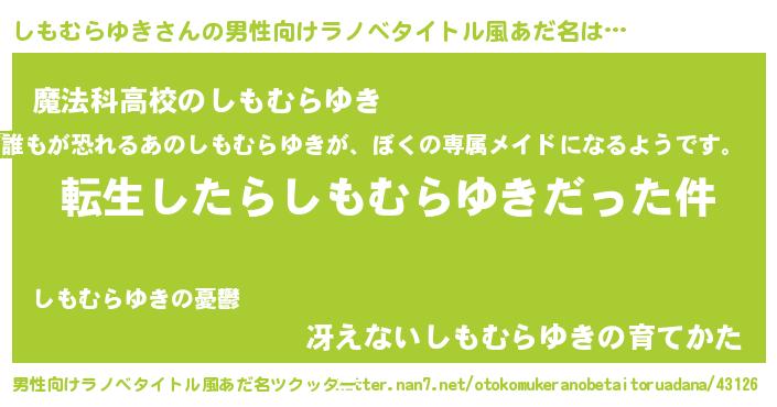 | 肩書あだ名 | 『しもむらゆき大佐』『しもむらゆき閣下』 |