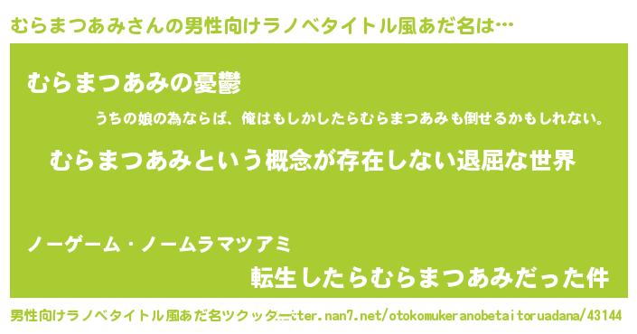 | 意味不明あだ名 | 『永久保存むらまつあみ』 |
