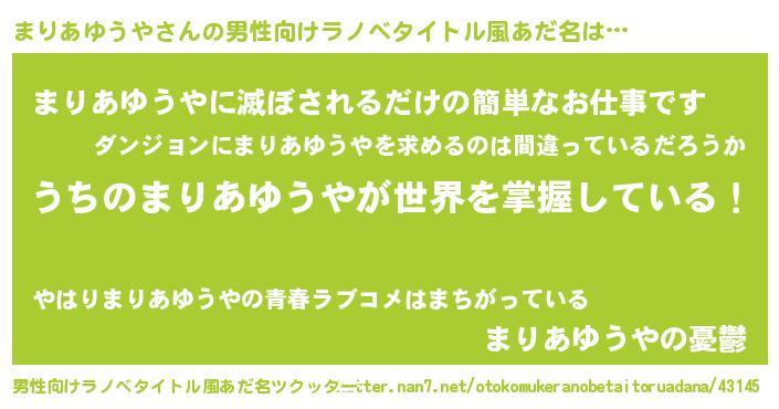 | 胡散臭い通販商品みたいなあだ名 | 『億万長者になれるブレスレット…その名も「まりあゆうや」』 |