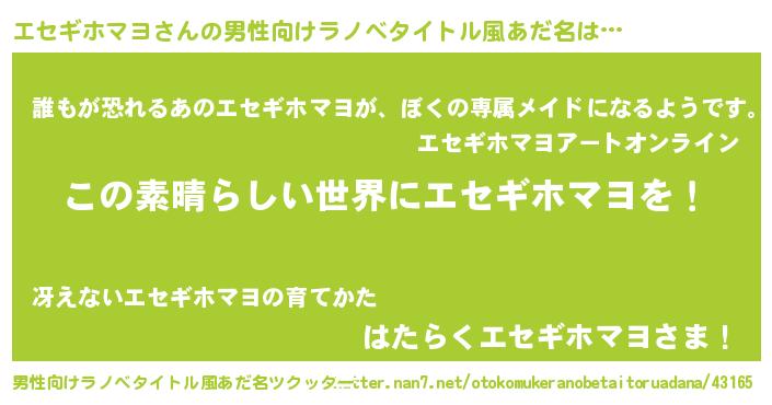 | 意味不明あだ名 | 『住所不定無職エセギホマヨ(89歳)』 |