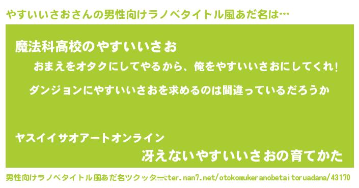 | 意味不明あだ名 | 『とにかく怪しいやすいいさお』 |