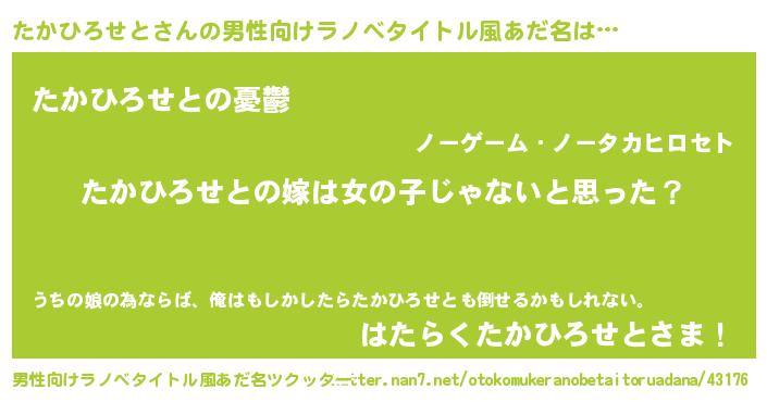 | 女子向けラノベタイトル風あだ名 | 『たかひろせと様がみてる』 |