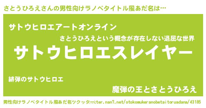 | ヒーロー風カッコイイあだ名 | 『スーパーサトウヒロエ』『仮面サトダー』 |