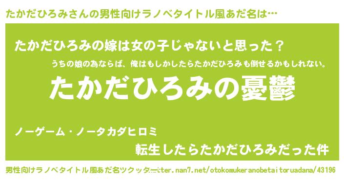 | 女子向けラノベタイトル風あだ名 | 『(仮)たかだひろみのやんごとなき事情』 |