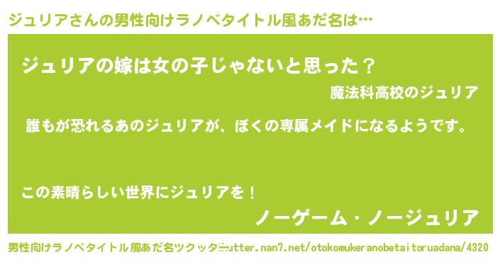 | 女子向けラノベタイトル風あだ名 | 『異世界でカフェジュリアを開店しました。』 |