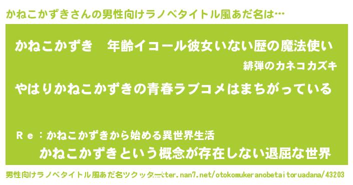 | ファンタジー風あだ名 | 『エターナルカネコカズキー』 |