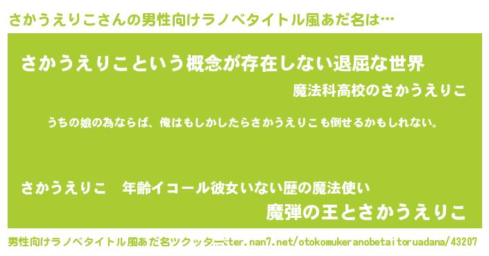 | ファンタジー風あだ名 | 『エターナルサカウエリコー』 |