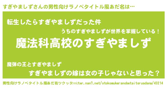 | 女子向けラノベタイトル風あだ名 | 『すぎやましずなんてお断りですっ。』 |
