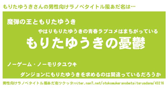 | 女子向けラノベタイトル風あだ名 | 『(仮)もりたゆうきのやんごとなき事情』 |
