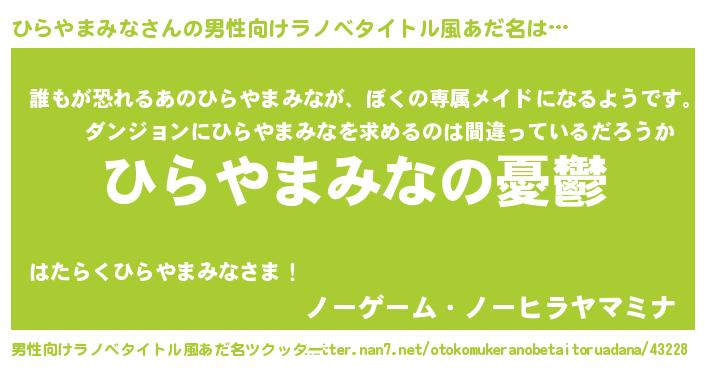 | 胡散臭い通販商品みたいなあだ名 | 『必ず成功する霊験あらたかなお札…その名も「ひらやまみな」』 |