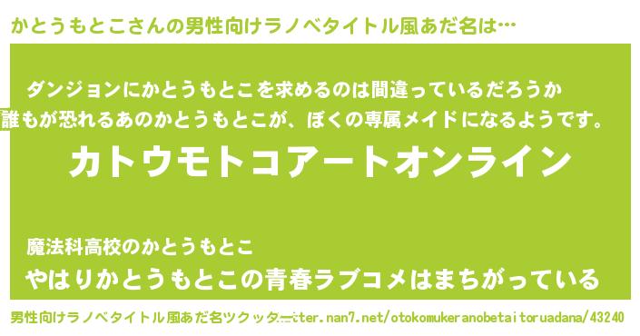 | 胡散臭い通販商品みたいなあだ名 | 『億万長者になれる水晶球…その名も「かとうもとこ」』 |
