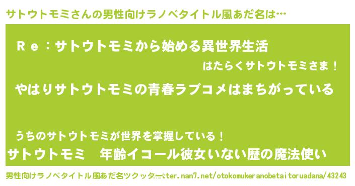 | 女子向けラノベタイトル風あだ名 | 『サトウトモミ伯爵の花嫁』 |