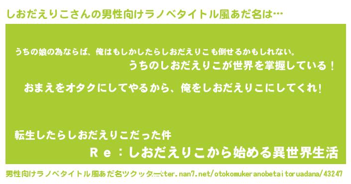 | 胡散臭い通販商品みたいなあだ名 | 『100人中100人が認めた隕石のかけら…その名も「しおだえりこ」』 |