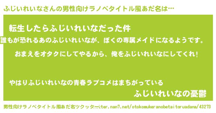 | 女子向けラノベタイトル風あだ名 | 『ふじいれいな夫妻のなれそめ』 |