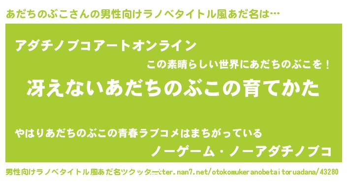 あだちのぶこさんの男性向けラノベタイトル風あだ名をツクッター!