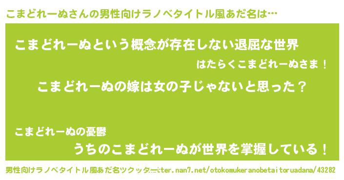 | 女子向けラノベタイトル風あだ名 | 『こまどれーぬ様がみてる』 |