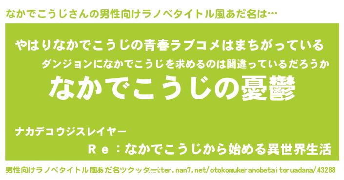 | 女子向けラノベタイトル風あだ名 | 『(仮)なかでこうじのやんごとなき事情』 |