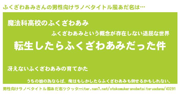 | ヒーロー風カッコイイあだ名 | 『サイバー戦士フクザワアミ』 |