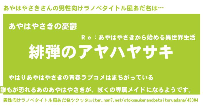 | ヘコむあだ名 | 『あやっふぃ~』『あやはやさき(小並感)』 |
