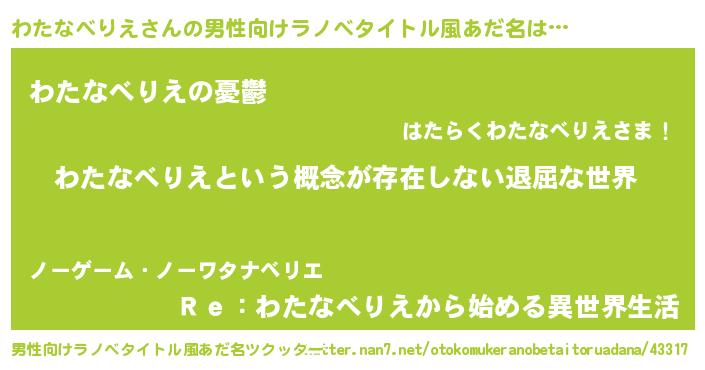 | 意味不明あだ名 | 『永久保存わたなべりえ』 |