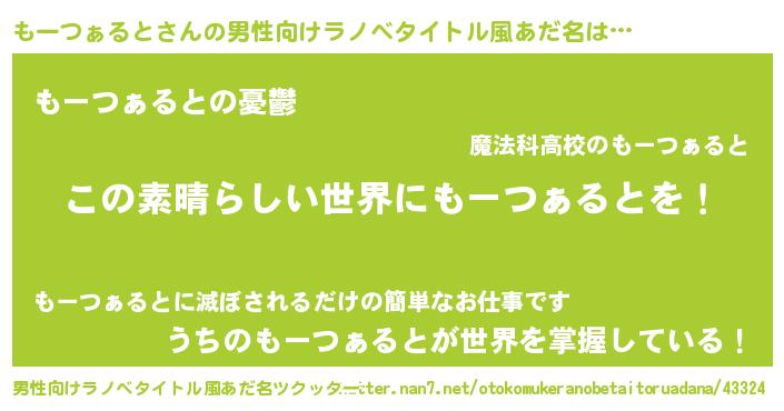 | 意味不明あだ名 | 『住所不定無職もーつぁると(3歳)』 |