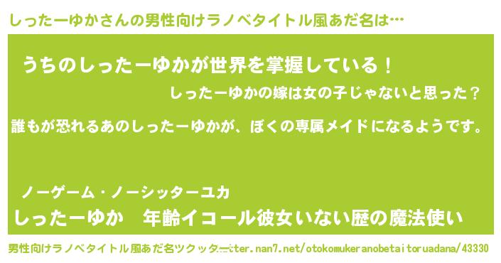しったーゆかさんの男性向けラノベタイトル風あだ名をツクッター!