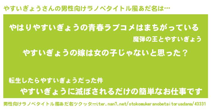 | 女子向けラノベタイトル風あだ名 | 『やすいぎょう様がみてる』 |