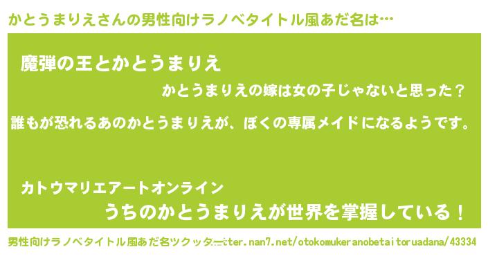 | ヘコむあだ名 | 『かとうまりえ(苦笑)』『かとを』 |