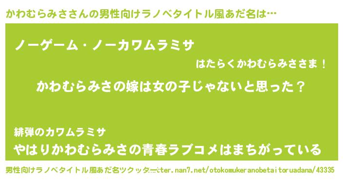 | 女子向けラノベタイトル風あだ名 | 『かわむらみさ様がみてる』 |